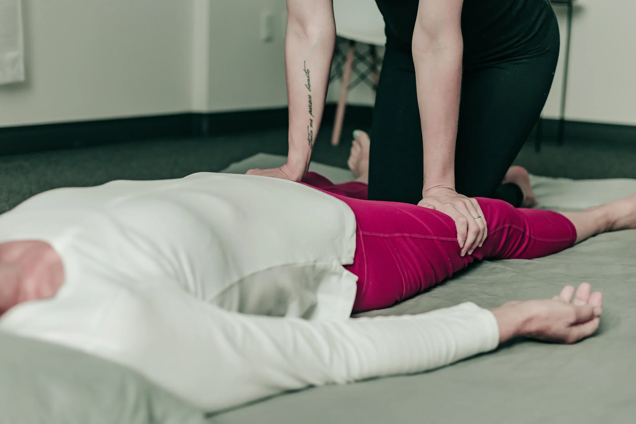 Thai Massage is a highly comprehensive full body massage done fully clothed on a padded mat on the floor with pillows and bolsters. Sessions involve deep compressions, detailed sen line work, and passive stretches to increase circulation, range of motion, flexibility, and to help reduce pain. Thai massage aims to clear blockages in the body’s sen lines in order to restore balance and harmony to the body. The session is adapted to your level of flexibility and desired pressure.